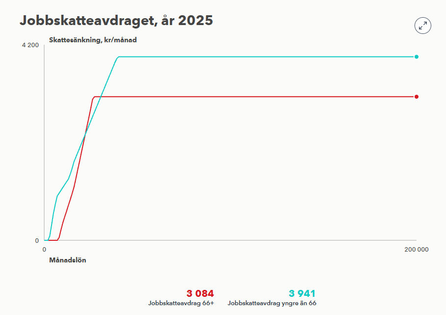 Som mest kan du få 3 084 kronor i jobbskatteavdrag på arbetsinkomster om du är 66 år eller äldre.