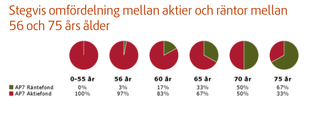 Den statliga premiepensionsfonden AP7 Såfa gör en förändring av fördelningen av fonder och aktier, så att den enskilda spararens innehav skiftar på den enskildes födelsedag. Så här påverkas din pension.